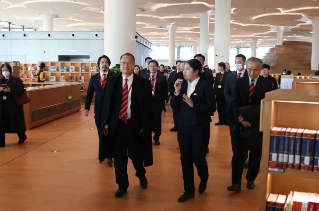移步至北京城市圖書館,這座將中國傳統的「赤印」意象和新型公共空間設計完美結合的圖書館,總建築面積約7.5萬平方米,藏書量達800萬冊,閱覽坐席約2400個的圖書館中,考察團不僅欣賞到通透璀璨的建築美,愜意雅韻的閱讀美,科技賦能的智慧美,也進一步了解到北京城市圖書館將雲計算、大數據、人工智能等新技術與圖書館管理、服務場景深度融合,重塑協同、共享、融合的業務管理平台。