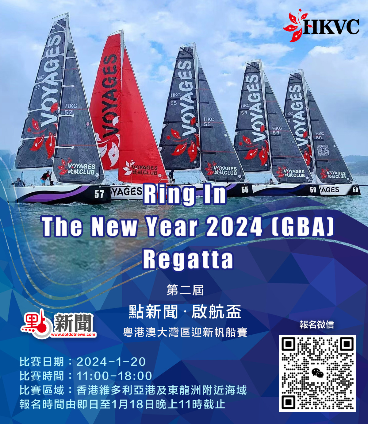 【點新聞報道】第二屆「點新聞·啟航盃」粵港澳大灣區迎新帆船賽將於下周六(1月20日)在維港開賽,為即將於3月16日舉行的「啟航盃 粵港澳大灣區城市聯賽(春季)」率先熱身。今次賽事由啟航國際航海俱樂部對報名費作全面贊助,有興趣參賽人士可掃描上方二維碼聯絡免費報名,報名期由即日起至下周四(1月18日)晚11時截止。