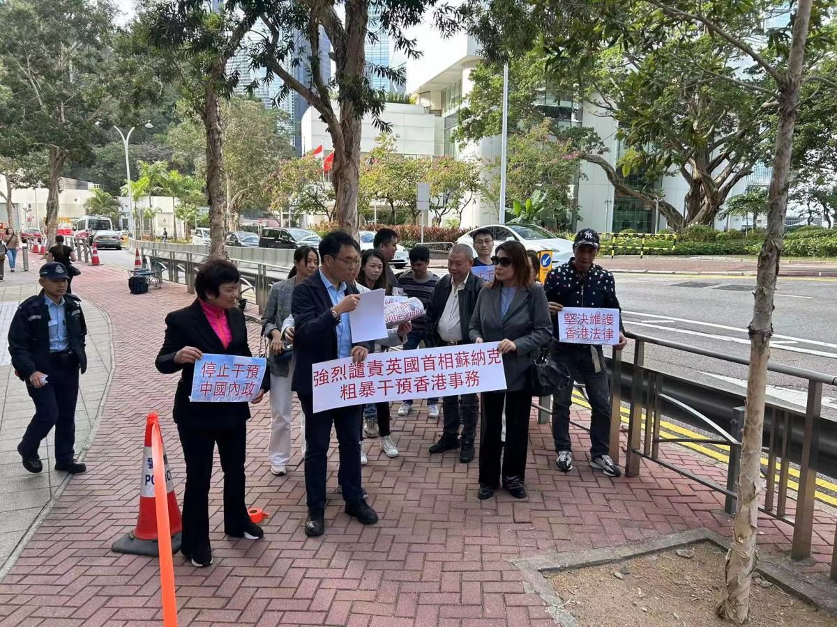 另外,西貢一群市民今日亦到英國駐港領事館前抗議,譴責英國首相干預本港司法獨立,妄圖影響本港法庭公平公正的審訊,惡劣行徑不單粗暴干涉本港法治,違反法治精神,更進一步暴露英方與黎智英長期勾結的事實,顯示英方意圖掩蓋更多英方縱容支持反中亂港活動的真相。