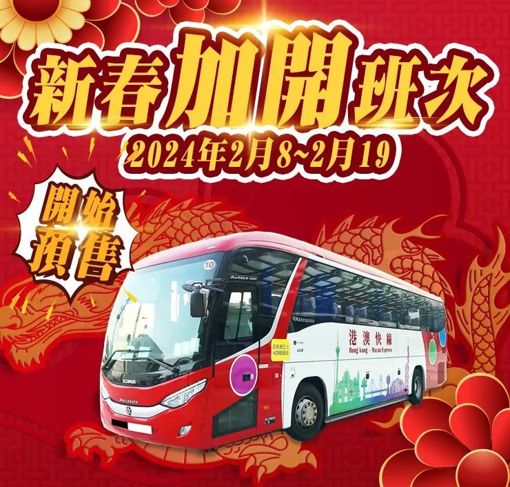 據「港澳快線」微信公眾號今日(17日)消息,為迎接新春佳節的來臨,「港澳快線」特別推出春節期間(2024年2月8日至2024年2月19日)的新增班次預售活動,讓廣大旅客提前在節日期間更好地安排與親朋好友的相聚時光。