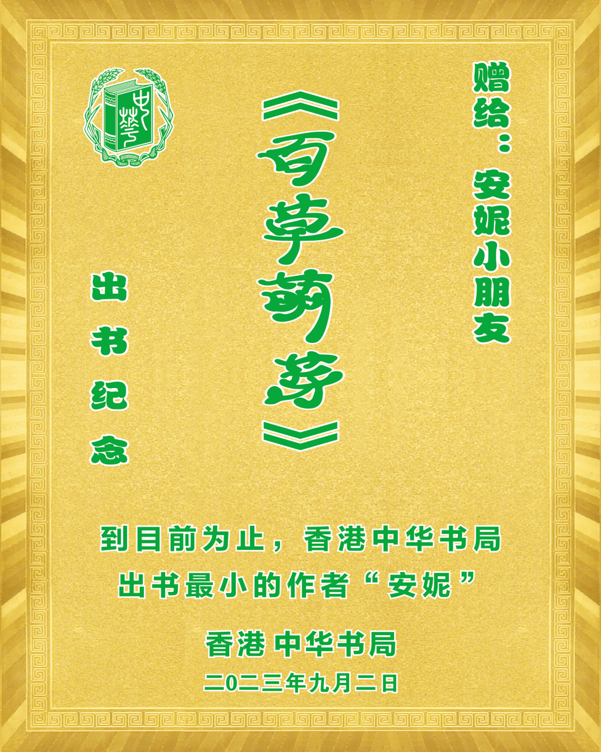 【點新聞報道】近日,點新聞記者從香港中華書局獲悉,該局出版了一本新書《百草萌芽》,是由一名10歲少年安妮所著,她也是目前香港中華書局110多年來出書最小的作者。10歲這個年紀,大多數孩子還在沉迷於玩具和遊戲中,而10歲的安妮卻已經將眼光投向了更為廣闊的天地。目前,《百草萌芽》一書在深圳中心書城有售。