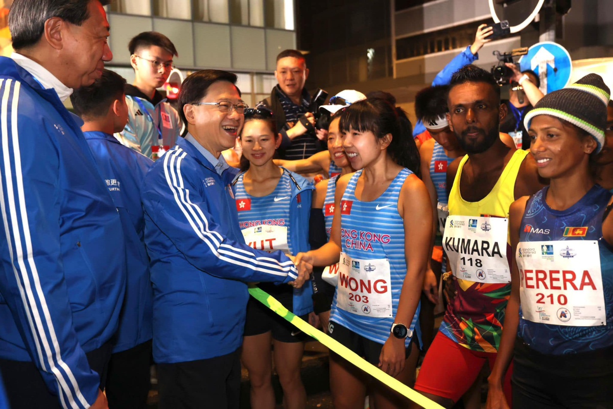 【點新聞報道】2024渣打馬拉松今早(21日)5時40分開跑,行政長官李家超在尖沙咀主持起步禮。其後李家超在社交平台分享多張相片,他在起跑前與多名參賽跑手交流,形容本地和海外的健兒們都活力十足,現場氣氛相當熱鬧。