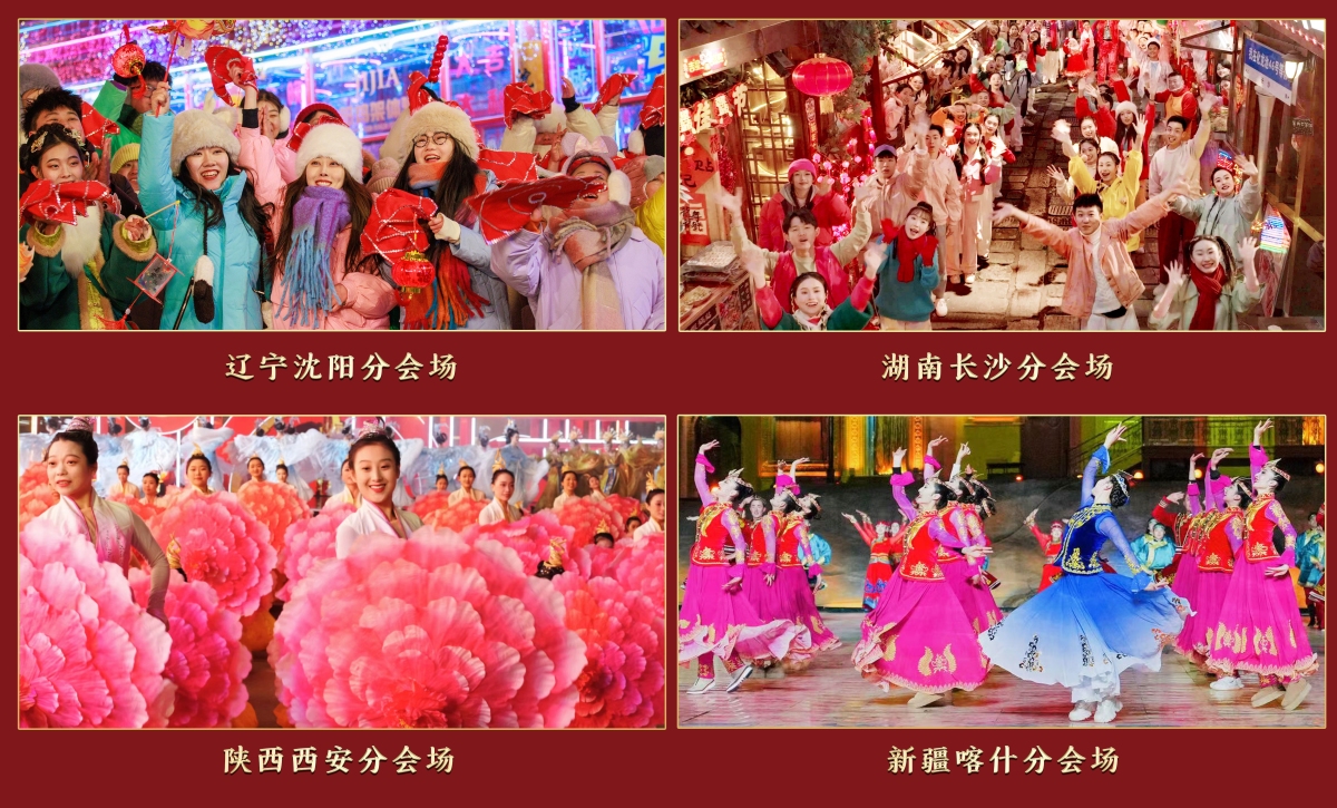 點新聞獲悉,2024年總台春晚採用「1+4」的模式,由一個主會場和四個分會場構成。在中國工業博物館的瀋陽分會場,東北曲藝與當代風尚的創意碰撞,讓受眾在冰天雪地感受火一般的熱情;長沙分會場選址於湘江與瀏陽河交匯處的「三館一廳」,用青春之歌讚頌「不夜星城」朝氣蓬勃、敢為人先的昂揚風貌;西安分會場的國潮表演將陝派說唱、創意水袖、鼓樂交響等多種藝術形式相融合,大唐不夜城再現詩意滿長安的恢弘景象;位於喀什古城內的喀什分會場,各族群眾歡歌笑語,帶來器樂展示、情景演繹等表演,共同奏響中華民族一家親的絢麗樂章。