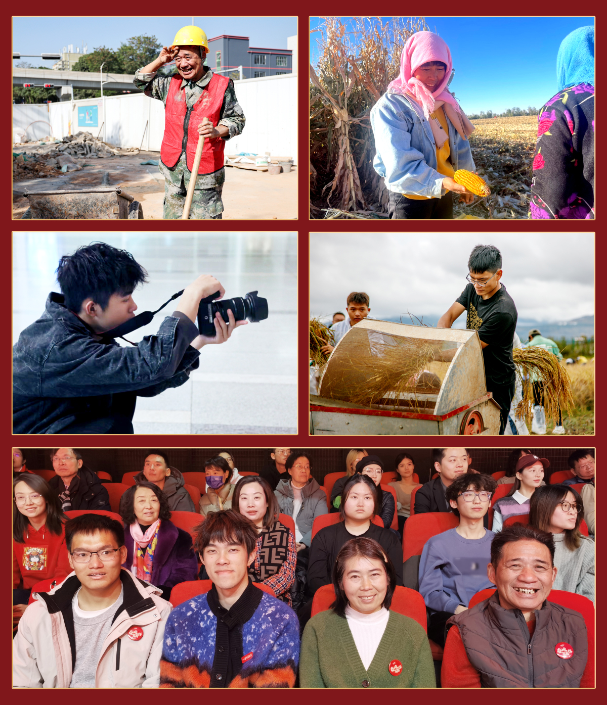 春晚劇組持續尋找在平凡生活中勇敢追夢、樂觀善良的普通人,將他們的故事作為節目創作的靈感來源,用質樸純真的情感連接你我。今次春晚綵排的觀眾席邀請到「彈鋼琴的建築工人」易群林、農民詩人「田鼠大嬸」裴愛民、「農大丁同學」丁習功和攝影博主「良田」施嘉棟。他們中有人用雙手築高樓大廈亦可奏動人樂章,有人在繁忙的勞作中追求文學夢想,有人用金點子傳播學農愛農正能量,有人用鏡頭向他人傳遞溫暖和善意。