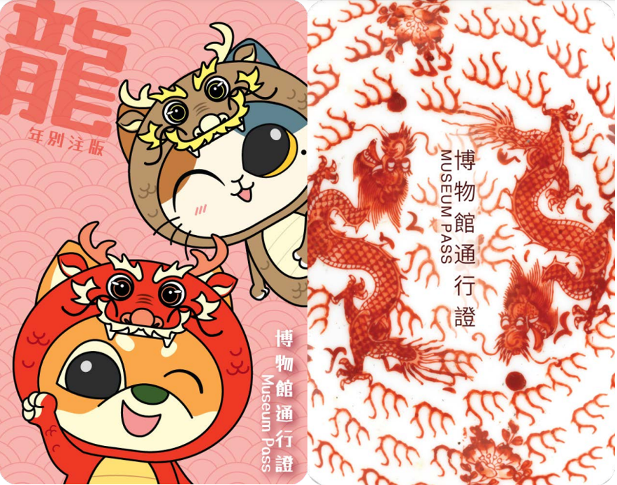 【點新聞報道】康樂及文化事務署(康文署)今日(22日)推出博物館通行證「龍年別注版」,和文博愛好者一同慶祝農曆新年。別注版共有兩款設計,包括充滿傳統氣息、來自博物館館藏「紅彩雙火龍碟」的圖案,以及換上新年服飾的康文署吉祥物「活力仔」及「思文喵」。市民即日起可於7間康文署指定博物館購買「龍年別注版」博物館通行證,數量有限,售完即止。