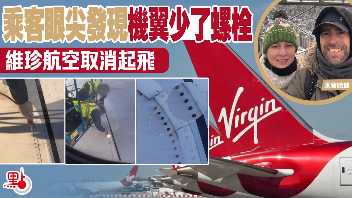 英國維珍航空(Virgin Atlantic)日前一架原定飛往紐約的航班,在起飛前最後時刻取消,竟是機上乘客眼尖發現機翼上少了固定4個螺栓。