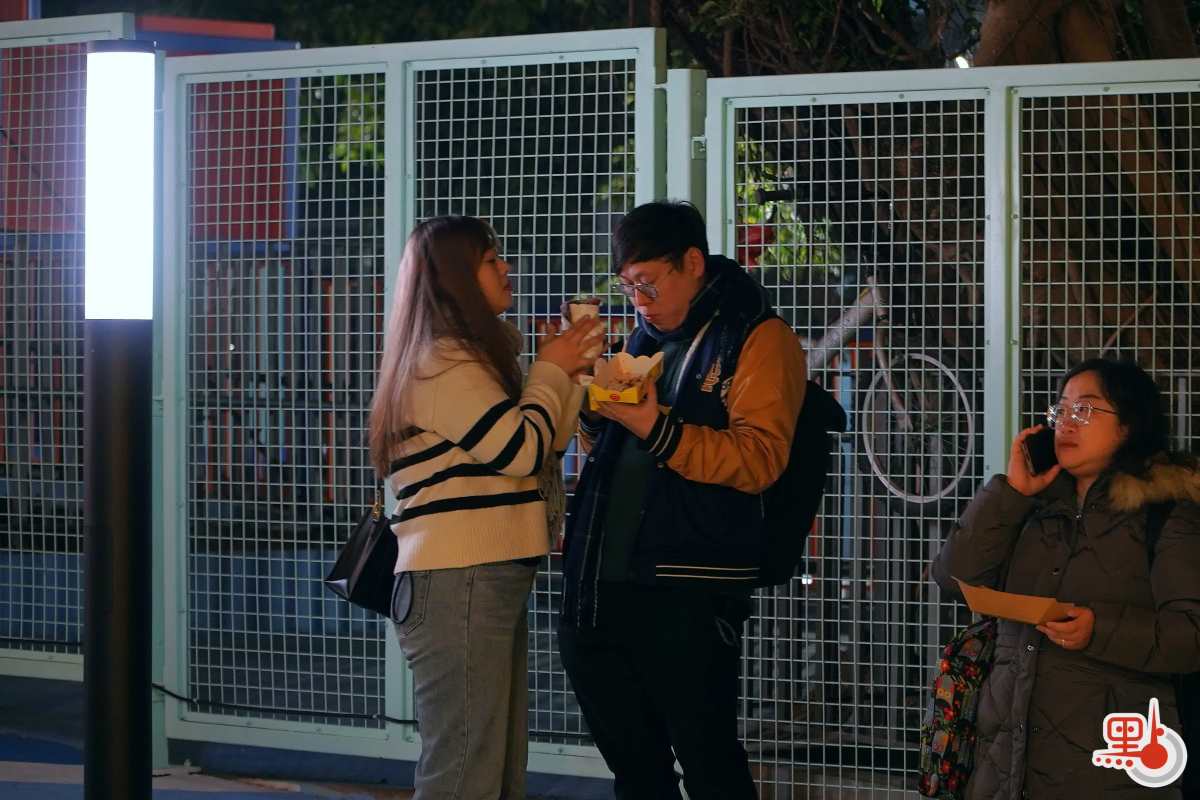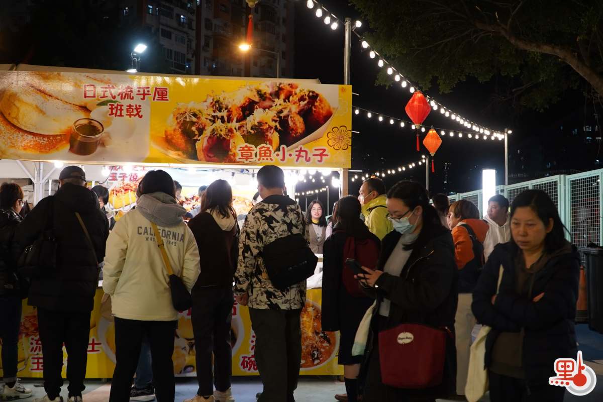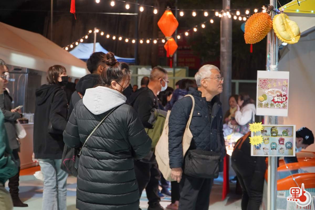開放首日,現場攤位仍有「吉」,但現場人流非常暢旺,尤其是在小食區,有學生、情侶、母女結伴來到這裏「打卡」,在寒冷的夜晚伴隨着月光吃上一口熱辣小食,是忙碌整日後的甜蜜時間。