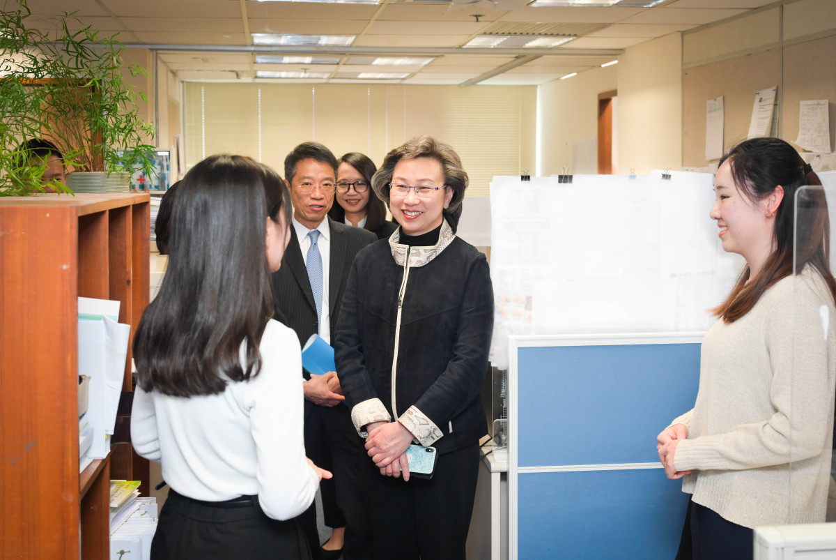 【點新聞報道】公務員事務局局長楊何蓓茵今日(26日)到民政事務總署,親身了解該署的工作和挑戰,並與署方各職系人員代表會面。