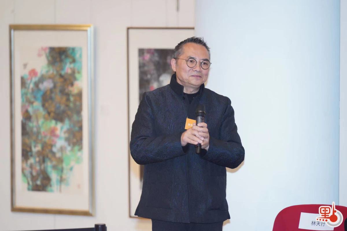 畫家林天行一直試圖將西方濃烈的色彩融入中國山水之中。他認為,藝術家應該用自己的視覺去發現,突破傳統中國畫色彩的界線,呈現世界的繽紛。林天行在發言時向到場嘉賓致謝,稱為此次展覽準備了45年,「在繪畫的行業裏堅持需要巨大的勇氣和信念,感謝香港給予我良好的機遇,我也將代表畫作獻給這片熱愛的土地。」