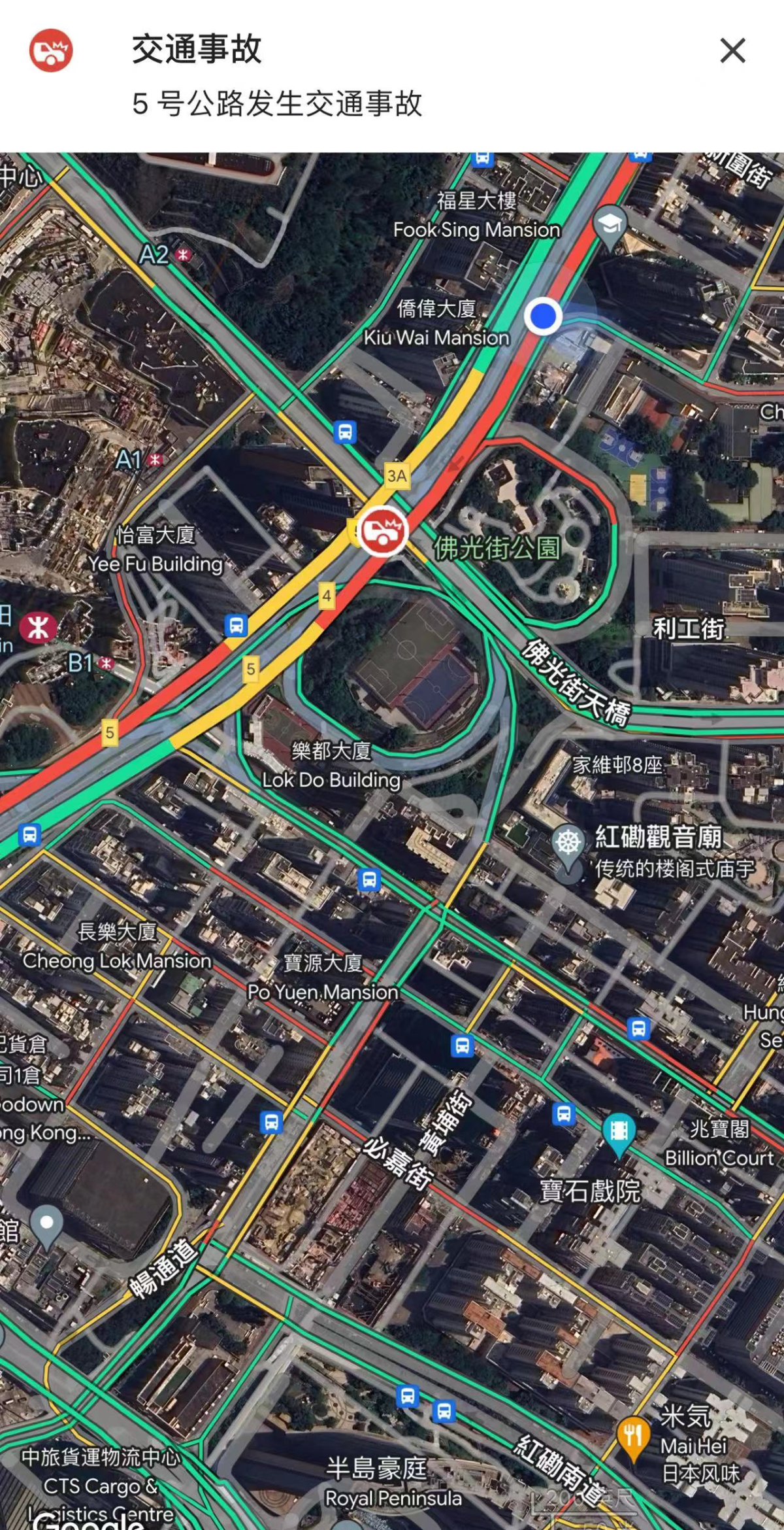 目前,因交通意外而封閉的漆咸道北(往海底隧道方向)近山谷道的快線現已解封。