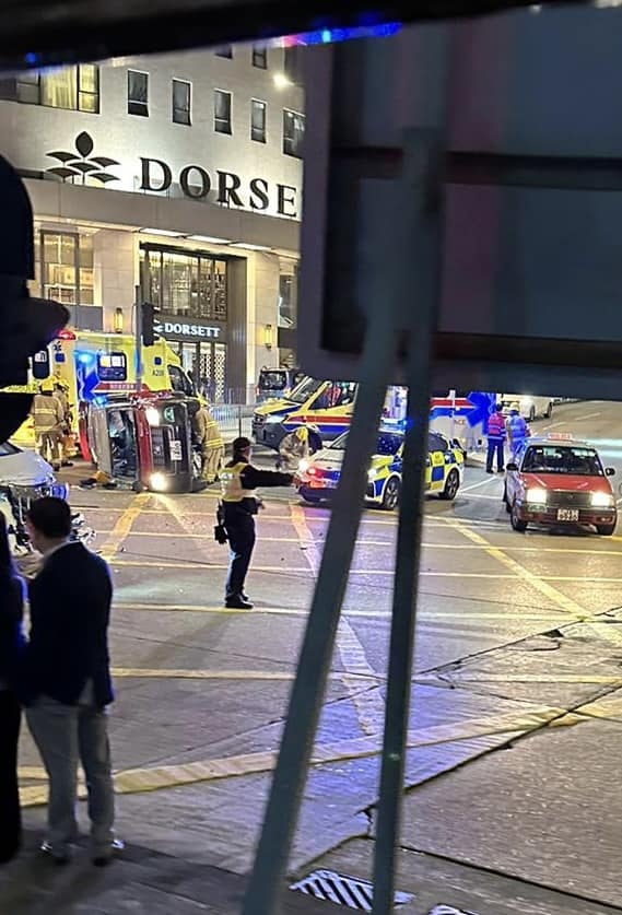 現場所見,涉事的士向右翻側,後轆飛脫,零件散落一地。拖車公司到場拖走兩車,警方正調查事件。受交通意外影響,皇后大道東與黃泥涌道交界的部分行車線一度封閉。
