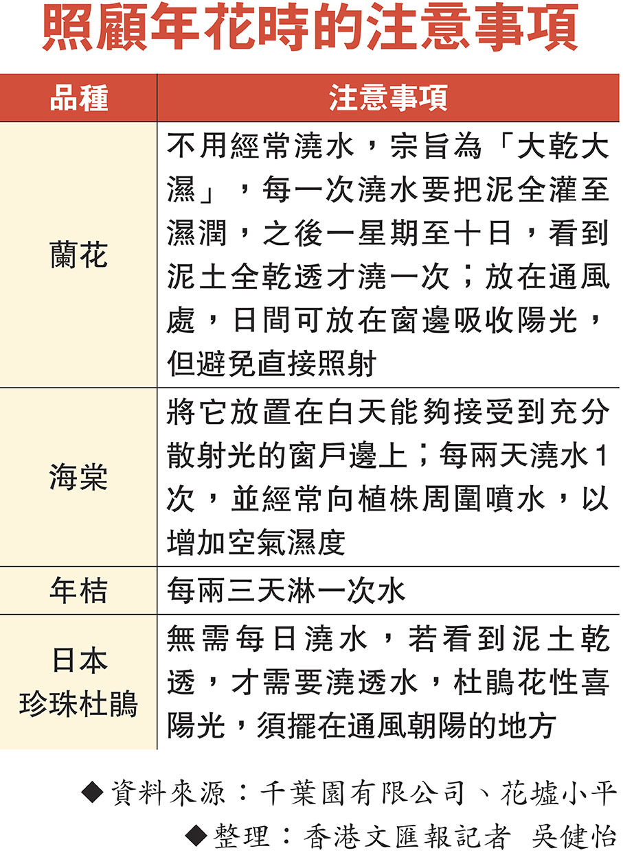 她說,消費者逛年宵時更看重造型,今年將推出造型精美的品種,包括蘭花、年桔、海棠以及日本珍珠杜鵑,其中的日本珍珠杜鵑更是她去年專門引入。