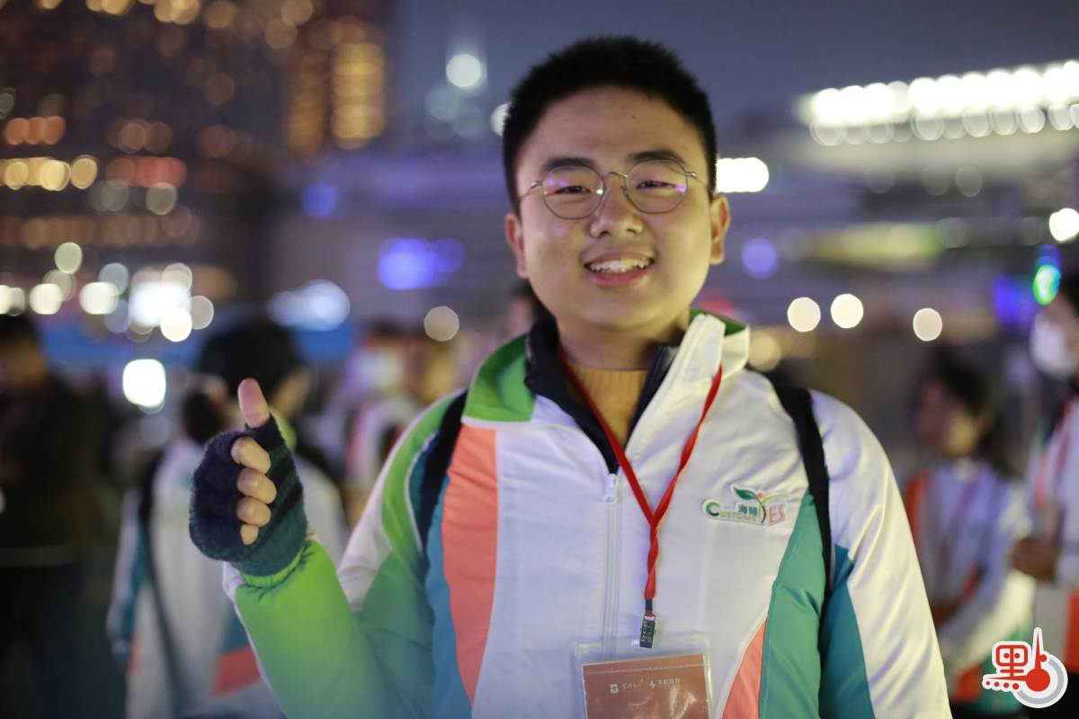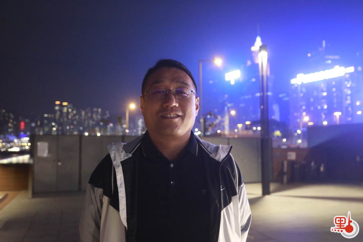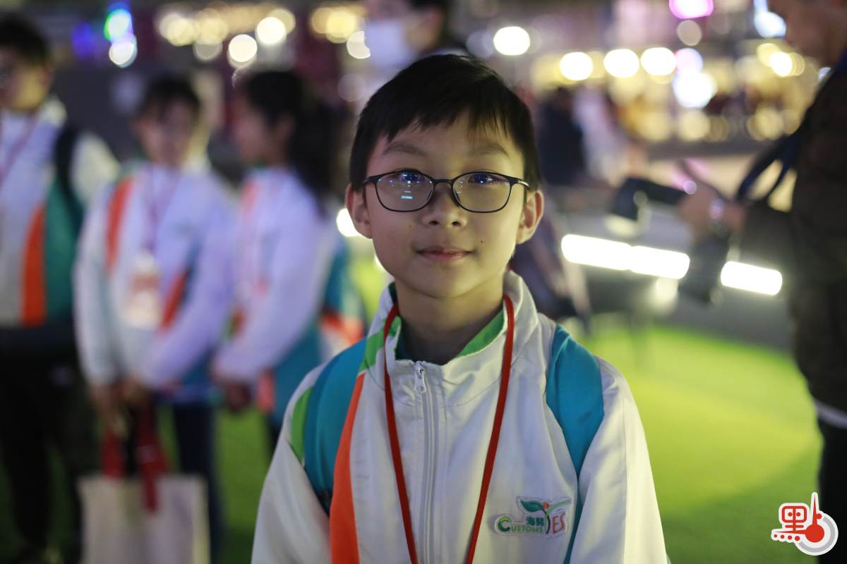 除同學收獲豐富之外,亦有內地旅客特地前來,觀看盛事。來自甘肅的鄭先生日前來港公幹,今日提前兩小時,搶先架好相機位,拍攝無人機燈光秀下的維港美景,又大讚無人機組成的圖案炫酷精美、夢幻靈動。
