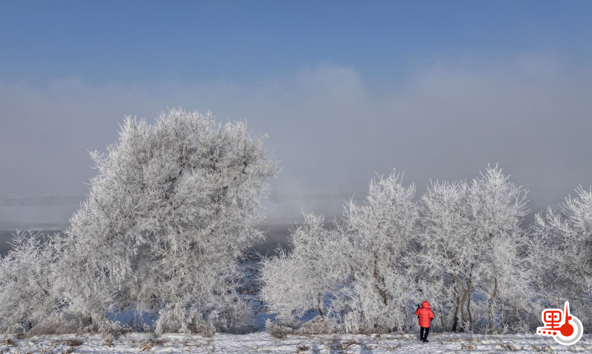 承接上篇,筆者在前一天從延吉直奔霧淞島,晚上到達後便覺氤氳瀰漫,心想明早應有機會看到霧凇。晚上在島上的農民開的民宿住一晚,雙人房盛惠120元人民幣(包早餐)。最難得的是翌日早上,農戶會帶我們去島上最佳欣賞和拍攝霧凇點。早上7點多,我們跟隨農戶的車去了三個點。剛開始時,因為太陽還未完全出來,場景較暗,拍攝不算理想。但當旭日在雲霧中冉冉升起,光線悠和,極適合拍攝/航拍。我的「兒子」(筆者的無人機的暱稱)便翺翔皚皚白雪的田野,氤氳霧鎖的江面,恰好在樹下有穿紅着綠的遊客,為這白得有點孤寂的大地,添上生氣。萬里雪飄一點紅,仿如丹心報國家。