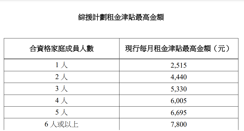 發言人續說,根據既定機制,政府會參考甲類消費物價指數中私人房屋租金指數的按年變動,從而調整綜援計劃租金津貼最高金額。儘管根據相關機制,租金津貼最高金額應由今年2月1日起相應下調,鑒於環球經濟環境困難或將令香港經濟繼續受壓,而綜援受助人仍然是最需要經濟援助的其中一群,因此政府會把租金津貼最高金額繼續維持在現行水平。
