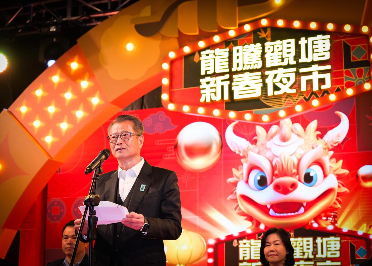 【點新聞報道】財政司司長陳茂波今日(29日)出席「龍騰觀塘新春夜巿」開幕典禮,他致辭時表示,「龍騰」象徵繁榮和吉祥。來年是龍年,深信在市民、政府和社會各界的共同努力下,香港定能克服現時面對的不少挑戰,經濟繼續穩步增長。