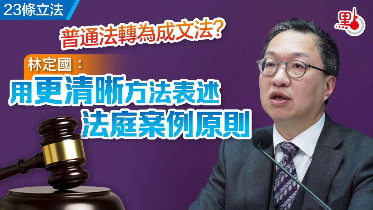 對於有市民留意到行政長官今早的說法,就是政府將會把一些普通法轉為成文法,究竟是一個什麼概念?林定國表示,普通法的意思其實就是基於一些幾百年前英國法庭判例所訂立的法律,但問題在於這些普通法的案例已經有很悠久的歷史,如何正確解讀這些案例,往往產生一些不明確的因素。因考慮到其實這普通法的案例,在其他司法管轄區包括美國或其他地方,已經更清晰用成文法的方式,將相關法律原則寫得更清楚。所以今次的做法只不過是將一個法庭案例的原則,用一個更清晰的方法去表述,而內容基本上並沒有任何改變,目的只是令相關法律能讓市民大眾更容易明白。而針對的其實只是諮詢文件裏第3.5段所說的罪名。