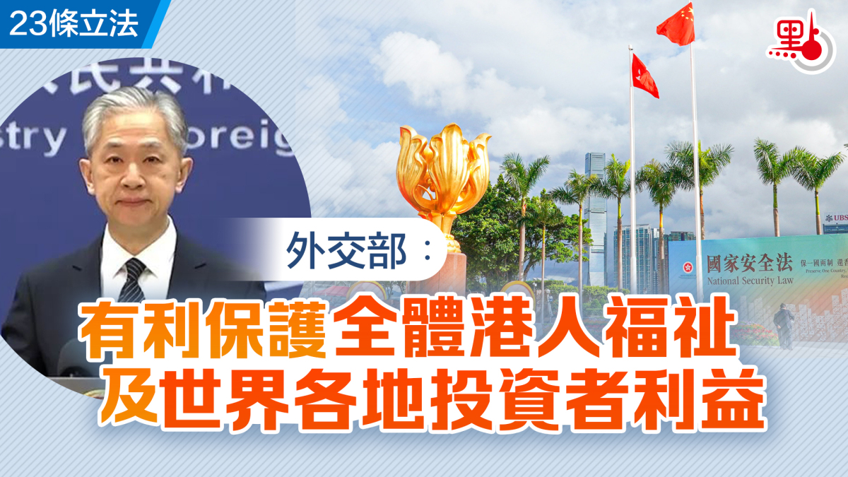 汪文斌指出,二十三條立法完成後,有利於保護香港全體居民的根本福祉,有利於保護世界各地投資者的利益,有利於特區以高水平安全保障高質量發展和高水平開放,集中精力發展經濟,改善民生,發揮香港的優勢特點,更好融入國家發展大局,實現自身高質量發展,我們對此完全支持,這也是香港社會的普遍期望。