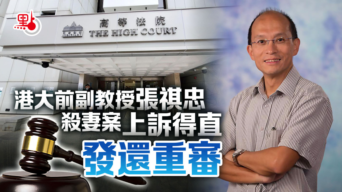 【點新聞報道】前香港大學機械工程系前副教授張祺忠,涉殺妻被控謀殺罪成,判囚終身監禁。上訴庭今日(2日)裁定他上訴得直,撤銷定罪,案件發還高等法院、交由另一名法官重審。