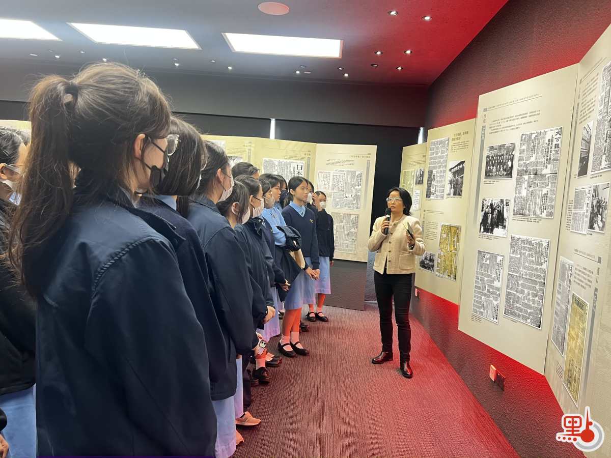 報史館分為《大公報》報史和《文匯報》報史兩部分。大文集團發行運營和品牌推廣中心助理總經理白蘭欣向同學們介紹,《大公報》創刊於天津,創辦人是英斂之,報刊的風格是愛國的、嚴肅的,以及1938年港版大公報創刊。同學們了解了《大公報》推動歷史的過程。例如,在西安事變中,通過發表重要社評,推動了西安事變和平解決和抗日統一戰線建立;在重慶談判後,大公報總編與毛澤東、周恩來、董必武等黨領導人會面,獲得毛澤東題詞「為人民服務」。走到《文匯報》報史館部分,白蘭欣介紹《文匯報》創刊於1938年,香港文匯報創刊於1948年9月。