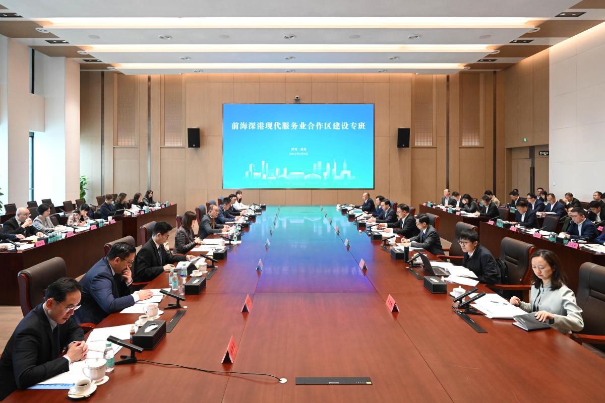 會議開始前,特區政府代表團一行到訪前海合作區,聽取深圳市前海管理局介紹前海最新發展情況。雙方在是次專班會議上達成強烈共識,將全力推動前海在大灣區建設中更好發揮示範引領作用,進一步深化港深合作。