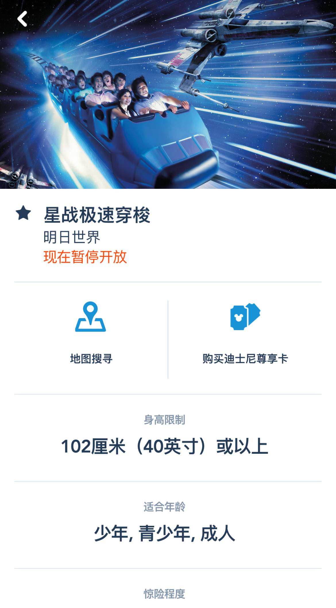 翻查資料,位於「明日世界」園區的「星戰極速穿梭」是園內唯一的室內過山車,以驚險刺激而聞名,運行速度頗快,亦會急轉與下墮。根據官網顯示,「星戰極速穿梭」將於2月26日至3月1日暫停服務,以進行定期檢查及保養工作。