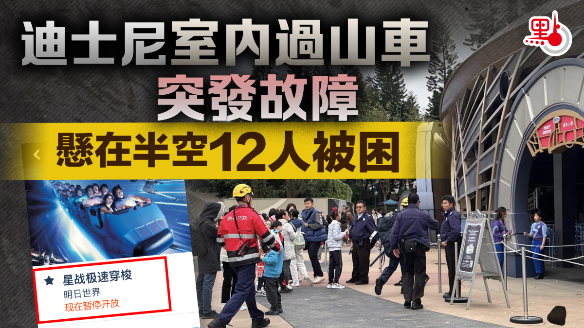 【點新聞報道】香港迪士尼樂園發生過山車故障。警方今日(7日)下午3時21分接報,指在迪士尼疑有室內過山車故障,停在半空,初步有12人被困。警方及消防高空拯救專隊趕至現場救援,被困人士約1小時後全部安全離開,無人受傷送院。