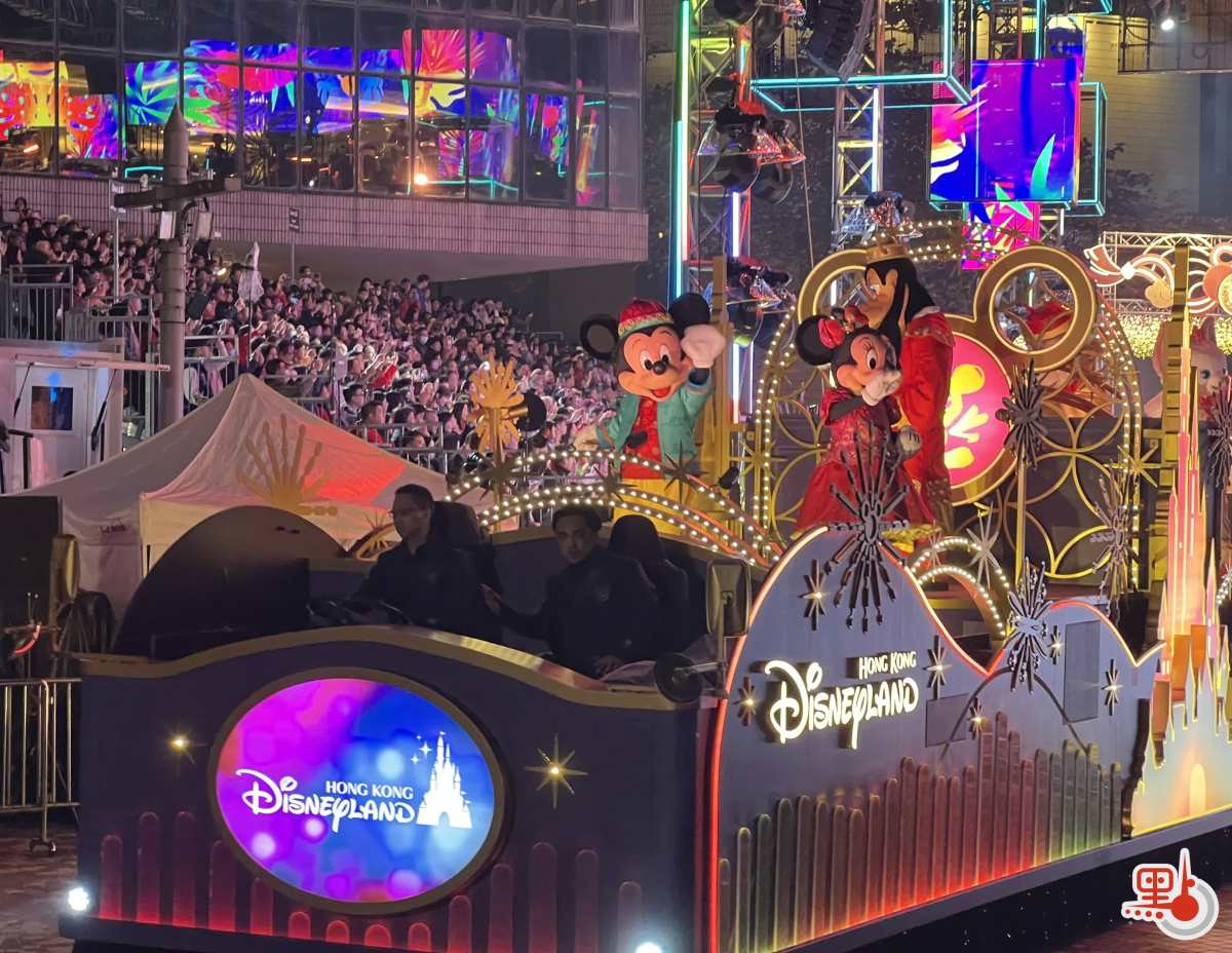 在歡呼聲中,來自香港海洋公園及水上樂園的花車駛來。花車展現香港海洋公園和首次登場的水上樂園元素,令觀眾感受公園多重魅力,包括可愛的動物大使,保育活動及刺激機動遊戲也在花車中呈現。