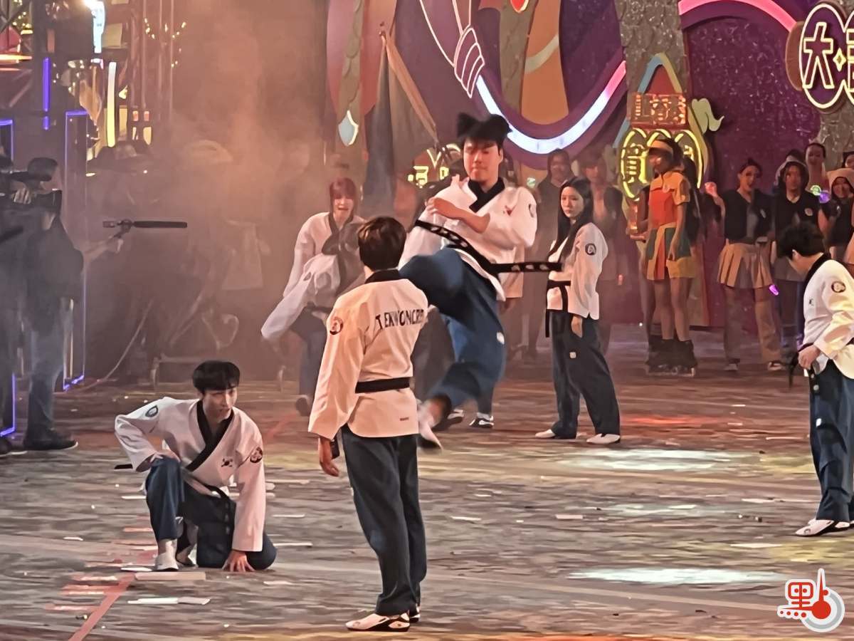 活動第四、第五部分分別為「喜氣洋溢」和「溢庫盈車」。韓國跆拳道表演隊以拳腳生風的熟練姿態,再配合舞台表演技巧呈現充滿跆拳道精髓,展示「踢木板」等經典場面,引起觀眾陣陣呼聲。
