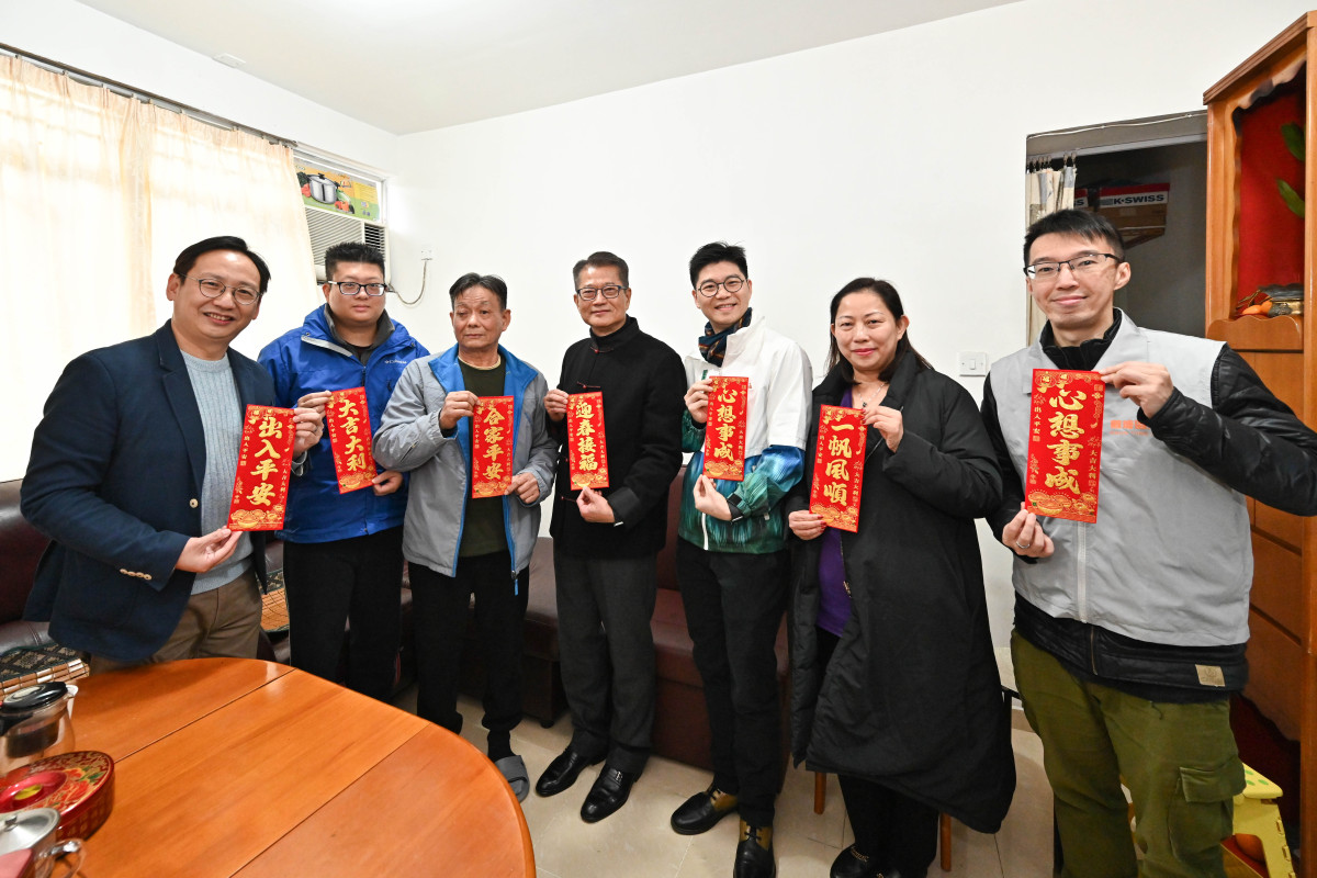 新年除了與親友慶祝外,政府也希望更多關懷社會上不同的社群。剛過去的歲晚,陳茂波去了觀塘的公共屋邨,探訪了幾戶長者家庭,為他們帶上一些生果、蛋卷和自家製的蘿蔔糕、芋頭糕,大家輕鬆閒話家常、互相祝福,彼此都感到開心溫暖。此外,他亦到旺角一間非牟利機構營運的安老院舍,探訪院舍內的一些基層獨居長者宿友,為他們送上一些賀年食品和小禮物,並寫了一些揮春,與一眾老友記說說笑笑,相互問候。