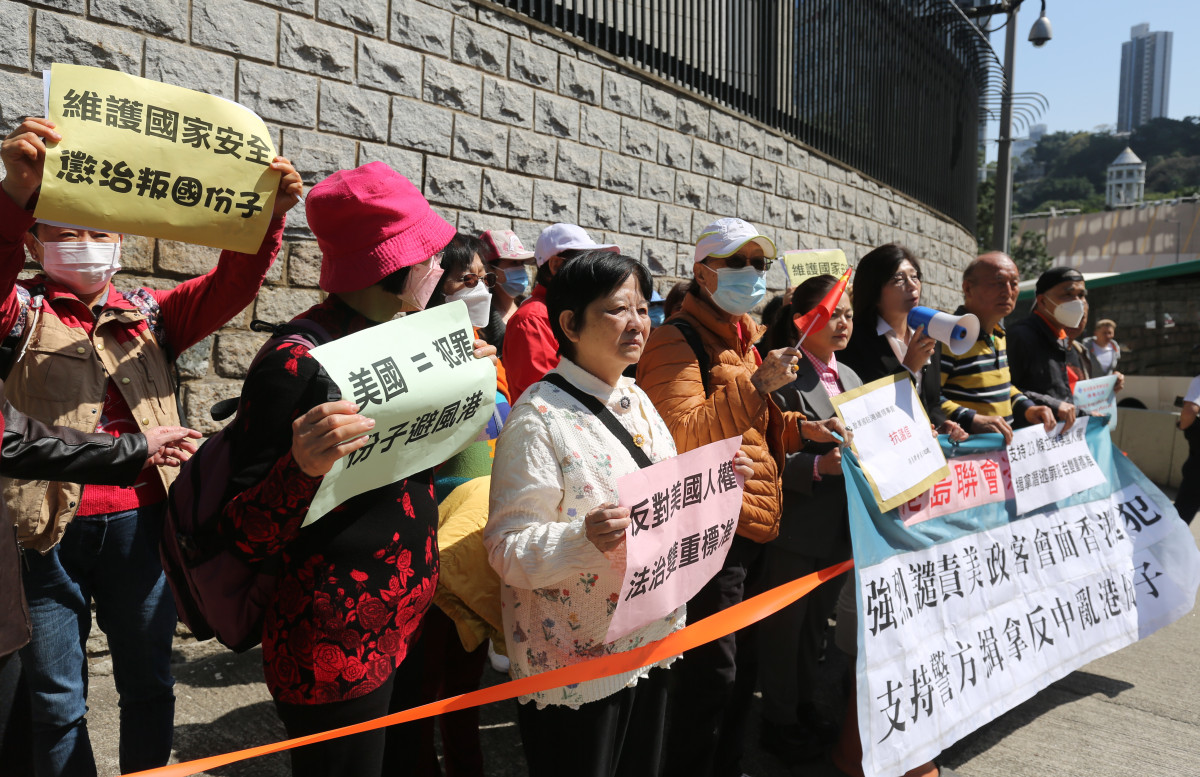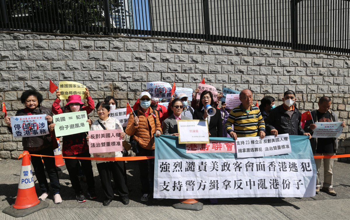 【點新聞報道】日前,美國國務院某助理國務卿公然會見四名被香港警方通緝的外逃反中亂港分子。本港各界紛紛發聲,強烈譴責美國高官公然勾連反中亂港的逃犯,多日來接連有市民團體到美國駐港總領事館前抗議。