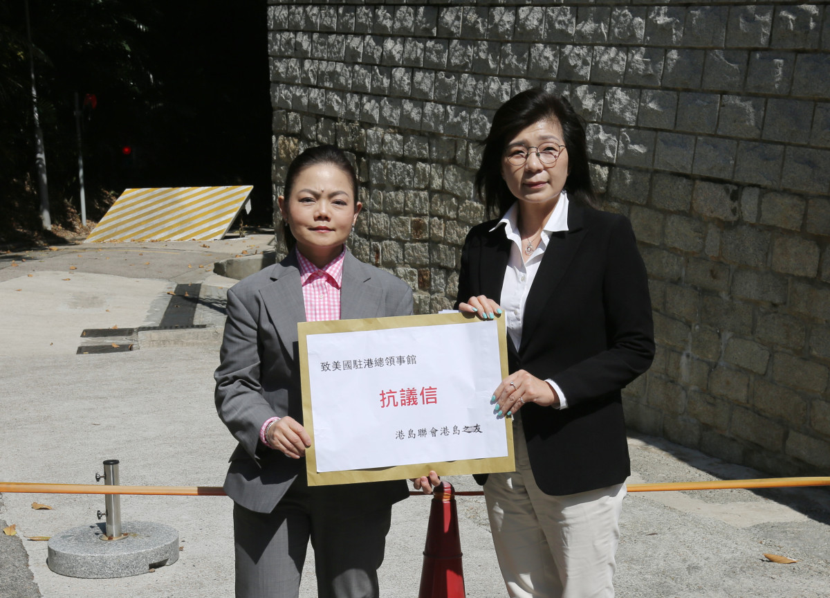 今早(12日),港島聯會代表前往美國駐港總領事館前抗議,並遞交抗議信表達不滿,強烈譴責美國政客會面香港逃犯,批評美國成為犯罪分子避風港,支持香港警方緝拿反中亂港分子,維護國家安全。