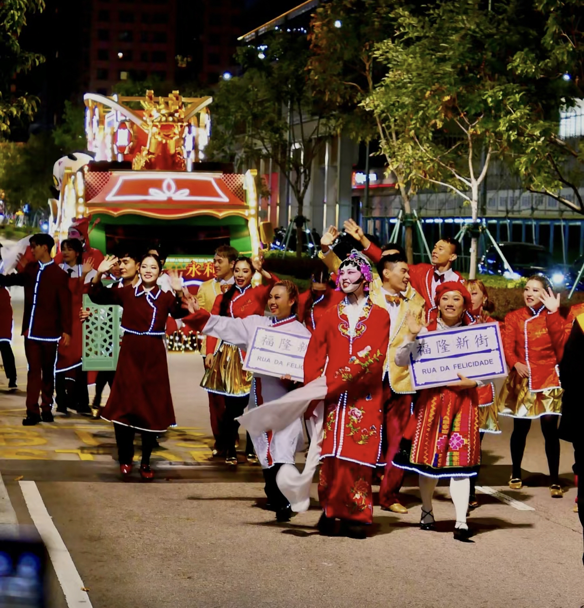 【點新聞報道】澳門今晚(12日)舉行農曆新年花車匯演,15輛花車及30支表演隊伍,途經孫逸仙大馬路巡遊至漁人碼頭,澳門特區行政長官賀一誠主禮。澳門經濟財政司司長李偉農致辭時表示,澳門特區政府將遵照「1+4」適度多元發展策略,積極推動與優化綜合旅遊休閒業發展,澳門經濟將會持續穩中向好。