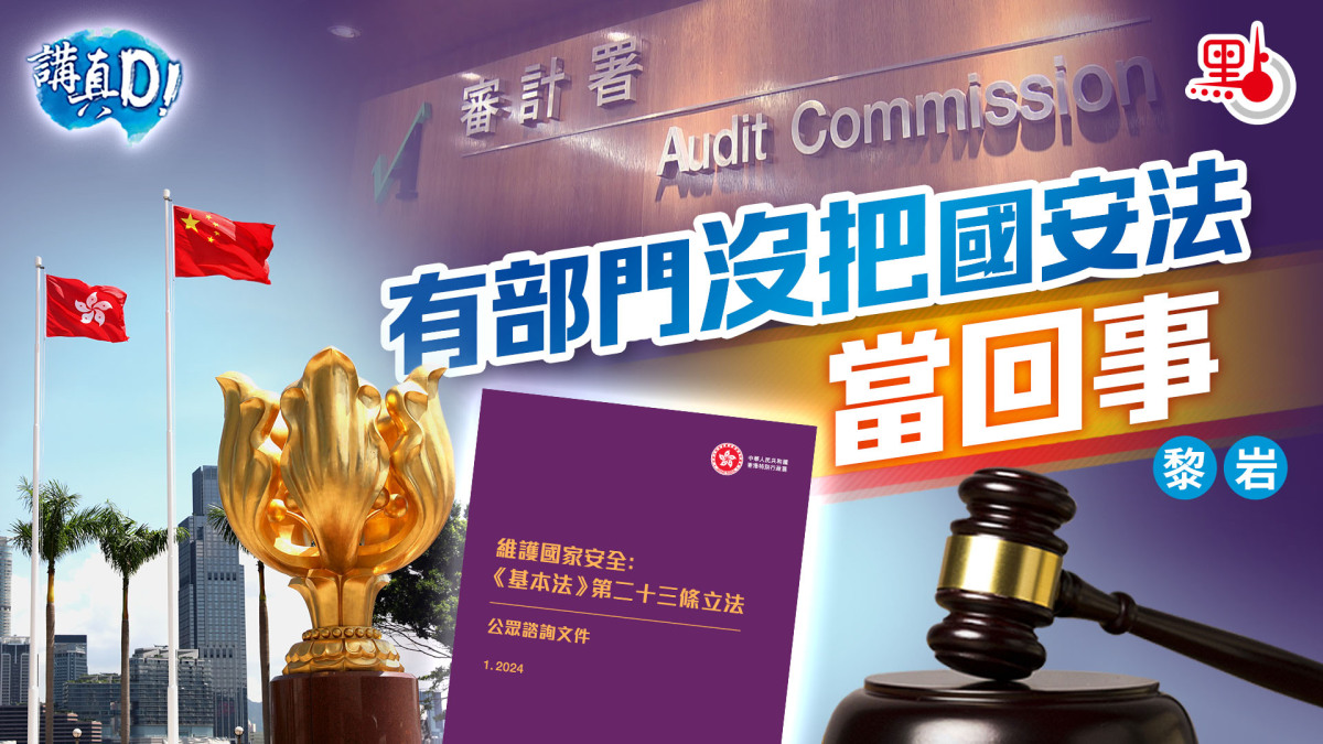 《香港國安法》於2020年生效後,審計署過去提出的三份審計報告均有多個章節,審視各部門或機構落實國安法情況,並提出了諸多切實可行、行之有效的管治建議。雖然在某些人的眼中口中誤以為審計署「離地」管過了頭,但是,若然能夠切實督促督導各部門履行憲制責任,鑄牢香港特區維護國家安全的銅牆鐵壁,就算是矯枉過正,也對營造風清氣正的特區社會環境,能夠起到敲邊鼓的作用。畢竟,只要是耗費公帑花費納稅人金錢的部門,一來是都有維護國家安全的憲制責任,二來是審計署在任何情況任何時候都有法定的審計責任,在這方面,公眾需要擯棄過往對審計署只是核數佬的偏見。