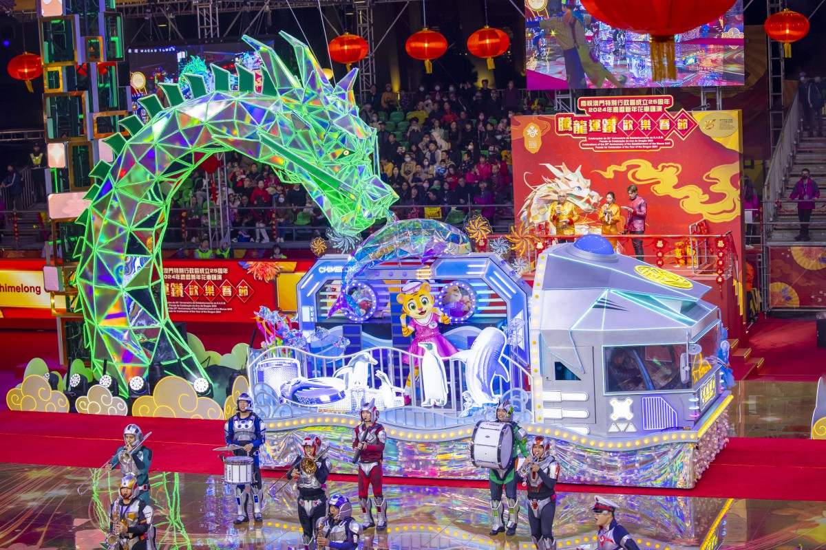澳門2024年農曆新年花車匯演吸引了15輛滿載福運的花車與來自澳門本地、內地、香港和海外的30支表演隊伍共約1000位表演者,從西灣湖廣場起步,經孫逸仙大馬路到達終點澳門漁人碼頭。其中,珠海長隆連續兩年參加花車匯演,今年長隆花車以「海洋動物」為主題,匯聚了虎鯨、超級猛獁珍稀海洋動物以及長隆宇宙飛船元素。現場看花車匯演的澳門楊小姐告訴記者:「我們之前也去過長隆宇宙飛船,我超級喜歡他們的大虎鯨!」