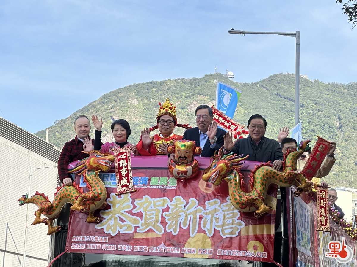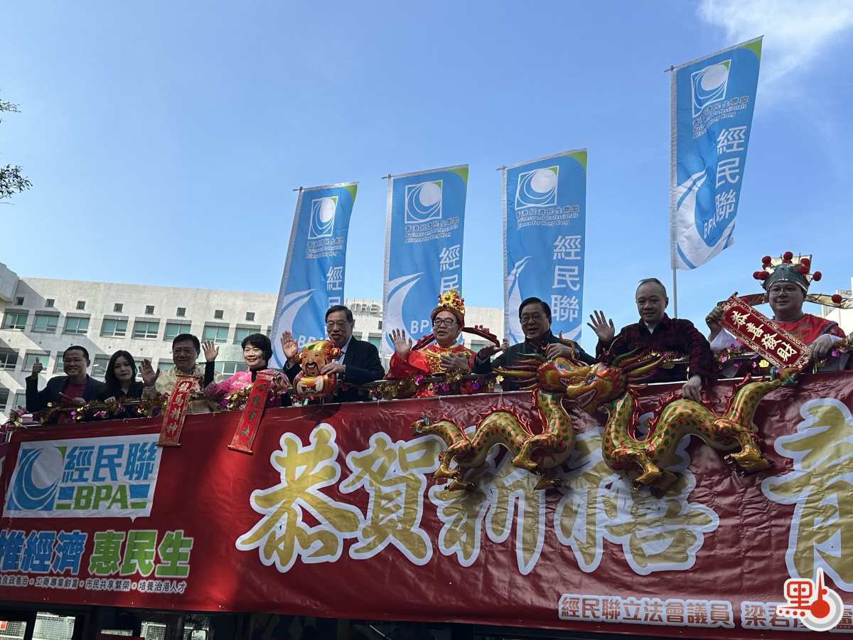 【點新聞報道】今日(15日)是大年初六。經民聯上午舉行花車巡遊團拜活動,經民聯立法會議員、區議員乘坐賀年花車到各區向街坊拜年,祝願全港市民龍年行大運,各行各業鯉躍龍門,香港經濟民生開創新氣象。經民聯榮譽主席梁君彥、主席盧偉國、副主席梁美芬等出席活動。