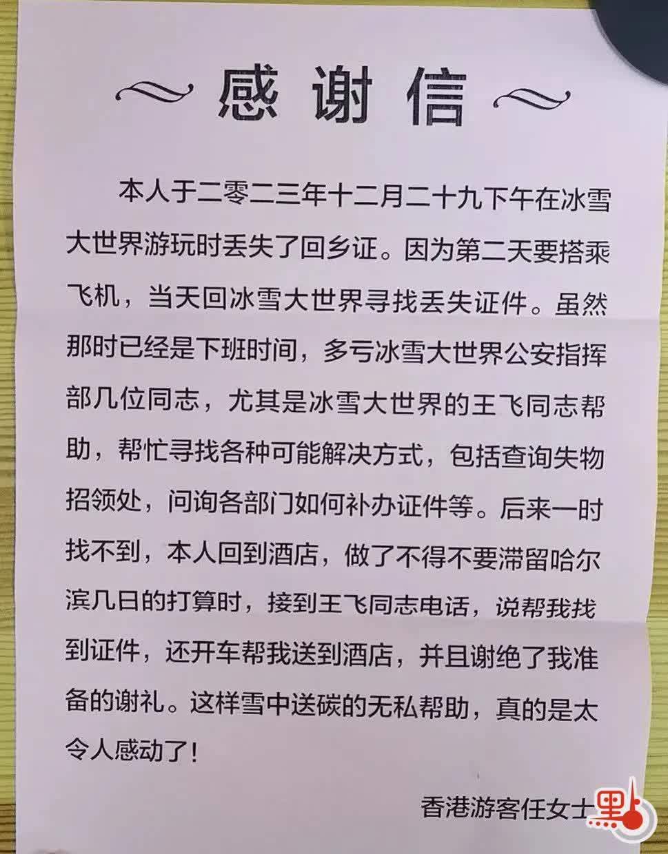 本屆哈爾濱冰雪大世界在遊客服務、遊玩感受和遊園保障方面不斷提升,「寵粉」成為冰雪大世界今冬又一個熱搜「關鍵詞」。面對滿懷期待和熱情奔赴而來的遊客。60天裏,累計進行失物招領4820餘次,員工拾到貴重物品返還遊客190餘次,幫助失主找回身份證、房卡等累計4600餘次。「約會哈爾濱,冰雪暖世界。」一張張笑臉、一面面錦旗、一封封感謝信,是遊客和哈爾濱冰雪大世界共同締結的最暖、最美感情線。