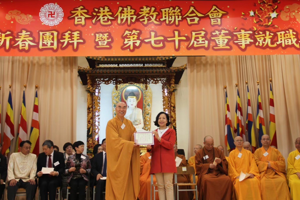 【點新聞報道】香港佛教聯合會今日(17日)在香港佛教聯合會文化中心舉行「甲辰年新春團拜暨第七十屆董事就職典禮」。民政及青年事務局局長麥美娟、中央政府駐港聯絡辦協調部副部長陳澤濤出席典禮,為佛聯會新一屆董事監誓及頒授證書。