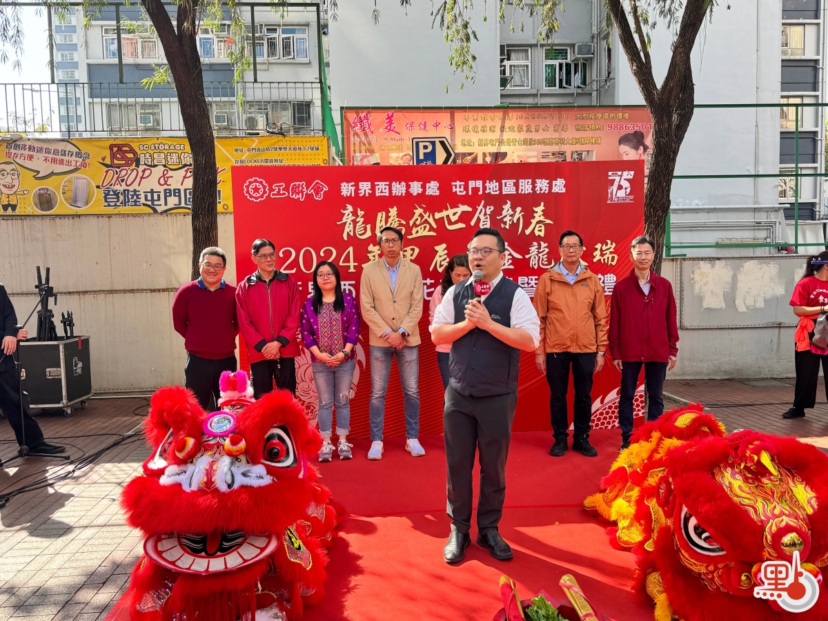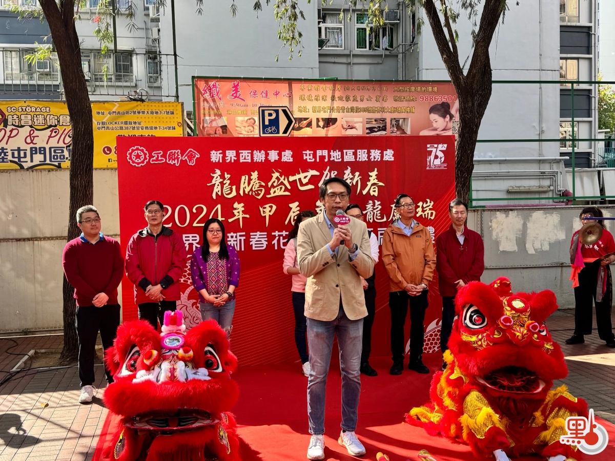 啟動禮今早於屯門舉行。工聯會政務委員會副主任、新界西辦事處主任歐志輝致辭時表示,希望通過巡遊與街坊分享新春喜悅,而花車期間也會聆聽各位街坊對社區和政府施政的意見,歡迎街坊轉達新春期望,再轉交特區政府。他續指,完善選舉制度、落實「愛國者治港」後,工聯會在屯門有多位區議員為大家服務,將堅持「為民生、撐基層」,在議會為大家發聲。