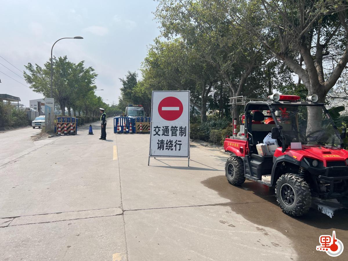 瀝心沙大橋航段和路面已實行臨時交通管制。記者趕往現場發現,通往瀝心沙大橋的路口也已交通管制。(點新聞記者帥誠攝)