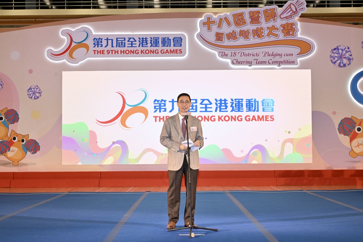 【點新聞報道】第九屆港運會的區際體育比賽將於今年4月21日至6月9日期間舉行,文化體育及旅遊局局長楊潤雄今日(25日)出席第九屆全港運動會十八區誓師暨啦啦隊大賽,表示港運會將會舉行過一千場精彩的體育賽事和多項社區參與項目,並預祝港運會參賽健兒在比賽中取得成功,再創佳績。