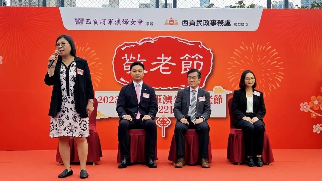 西貢將軍澳婦女會主席梁鳳瑜在致辭時,高度讚賞關愛隊在支持和協作的過程中,發揮很強大服務和動員網絡,協助主辦單位成功籌備是次盛大的千歲宴。