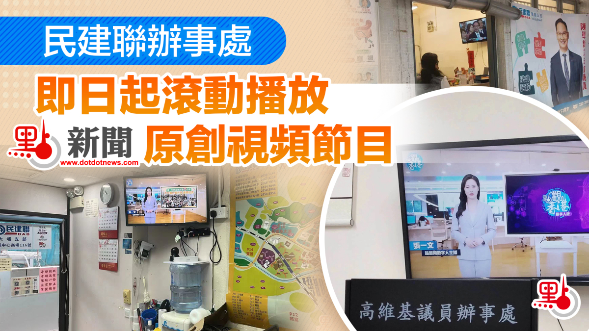 【點新聞報道】民建聯10多個有電子屏的地區辦事處,即日起開始滾動播放香港大公文匯全媒體及點新聞製作的視頻產品,視頻內容主要為時政熱點新聞,每日更新,幫助市民第一時間掌握與民生相關的時事政策。
