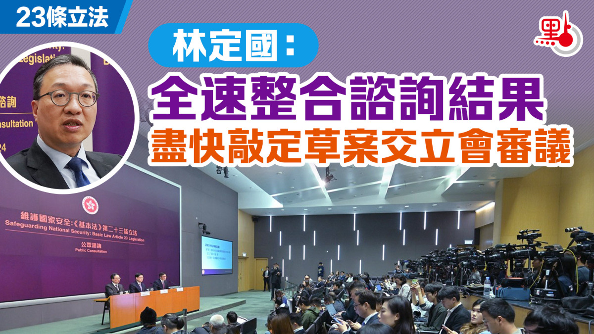 律政司司長林定國今日(29日)在社交平台發文指,政府會全速整合諮詢結果,向立法會保安事務委員會及司法及法律事務委員會聯席會議匯報,並參考所有提交的意見,盡快敲定《維護國家安全條例》草案,提交立法會審議。