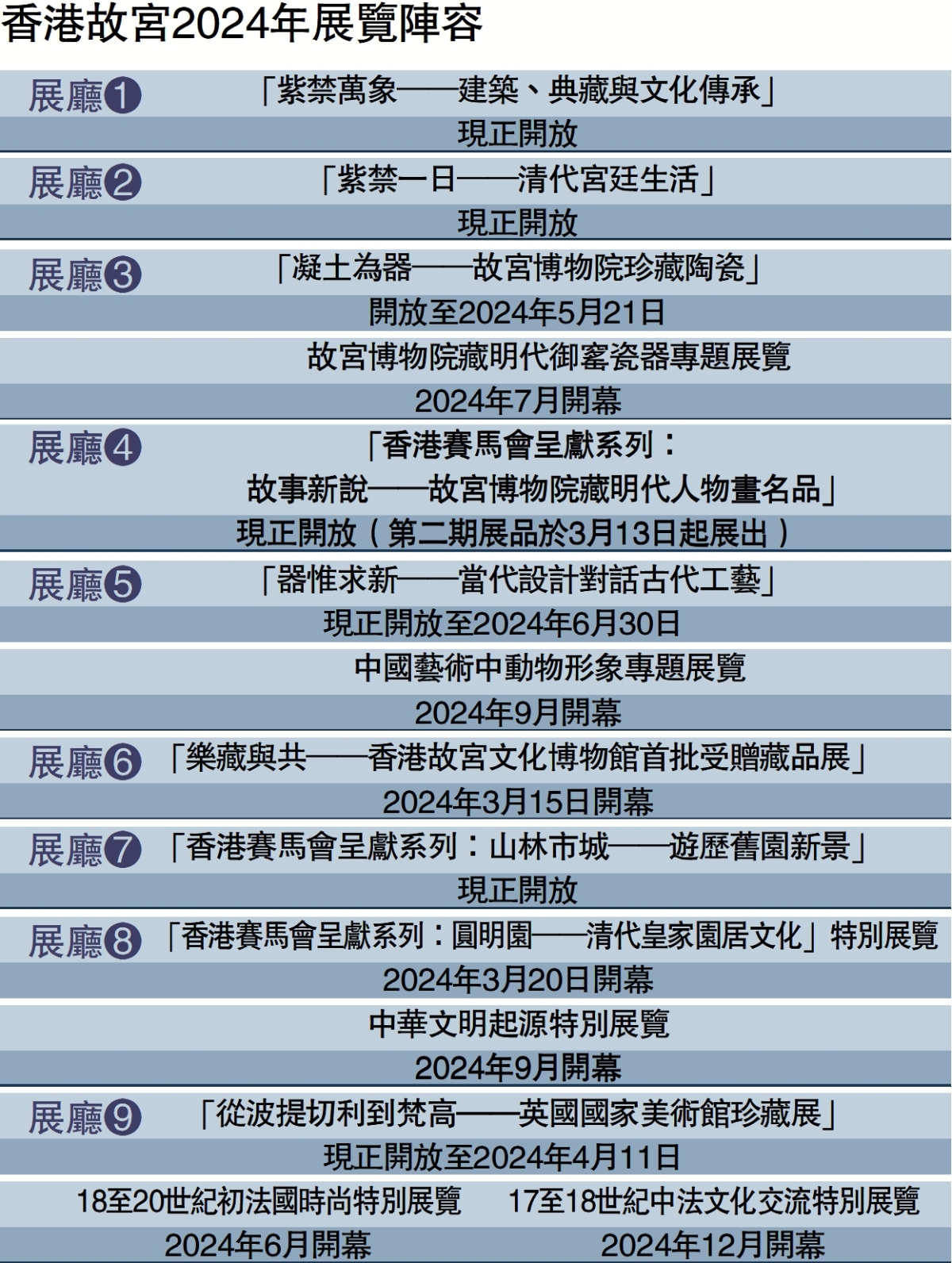 香港故宮文化博物館昨日(29日)公布2024年的全新展覽陣容,主題豐富多樣,策展角度創新,展品精彩紛呈,引領廣大觀眾探索中華和世界文化藝術的魅力。香港故宮於2024年呈獻的首個大型特別展覽為「香港賽馬會呈獻系列:圓明園——清代皇家園居文化」,展覽將展出逾190件與圓明園相關的重要文物,涵蓋書畫、器物、燙樣(建築模型)等,重現這座清代著名皇家園林昔日輝煌。展覽2024年3月20日至8月12日於展廳8開放予公眾參觀。