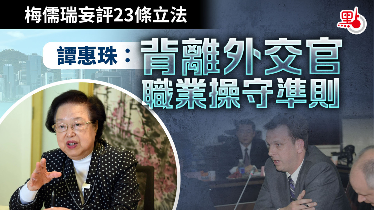 對於梅儒瑞受訪時就香港基本法第23條立法問題妄加評論問題,譚惠珠認為,梅儒瑞需要澄清,這是他個人意見,還是美國政府的意見,「以梅儒瑞駐港總領事的身份作出這些評論,明顯地背離了領事官員基本的職業操守和行為準則,是嚴重干預香港事務的做法。」