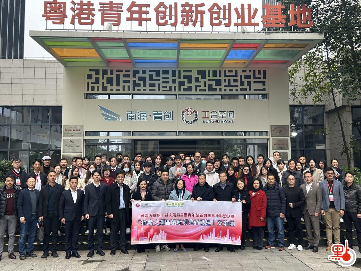 【點新聞報道】3月2日,由民政及青年事務局局長麥美娟率領的「連青人網絡探索大灣區創新創業新機遇」交流團,前往位於廣州和佛山的「大灣區香港青年創新創業基地聯盟」成員基地考察,詳細了解了基地的建設、運營情況。專程從香港前往佛山的科技創新界立法會議員邱達根,參加了當天的交流團活動,並在「議員面對面」環節與一眾香港青年分享香港創新科技政策、動向和創業機遇。