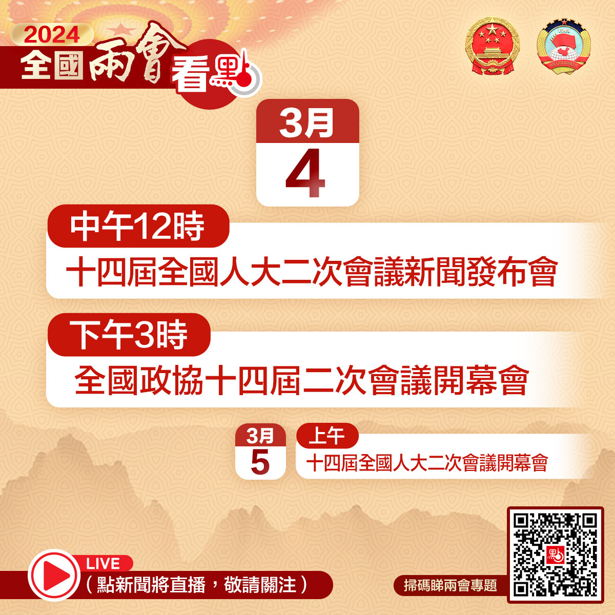 【點新聞報道】2024年全國兩會召開在即,全國兩會每天都有哪些看點?快來一圖睇清!