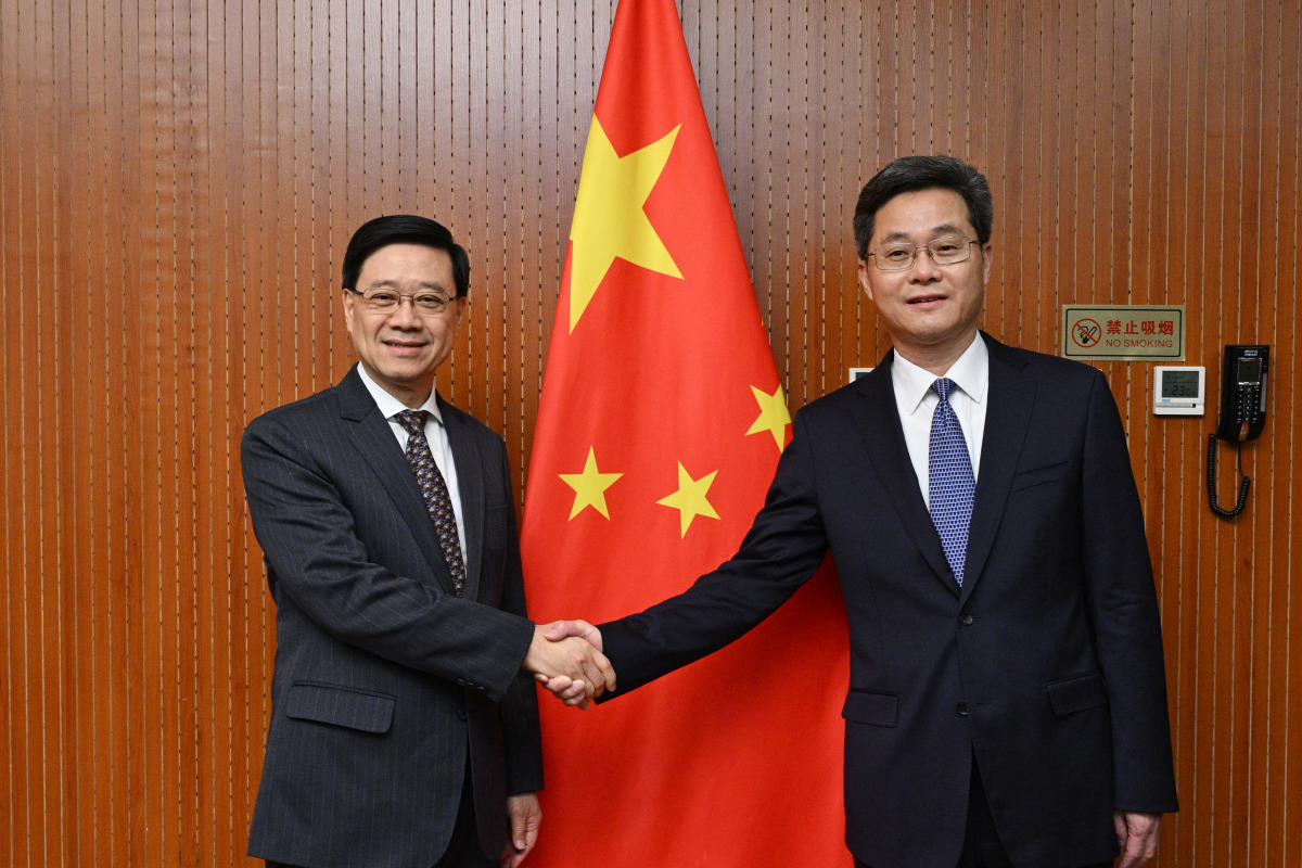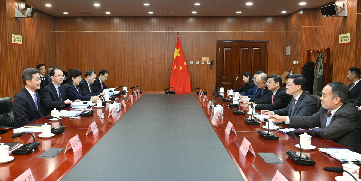李家超一行先拜訪國家財政部,與財政部部長藍佛安會面,就加強內地與香港金融合作以及鞏固香港作為國際金融中心地位等議題交換意見。