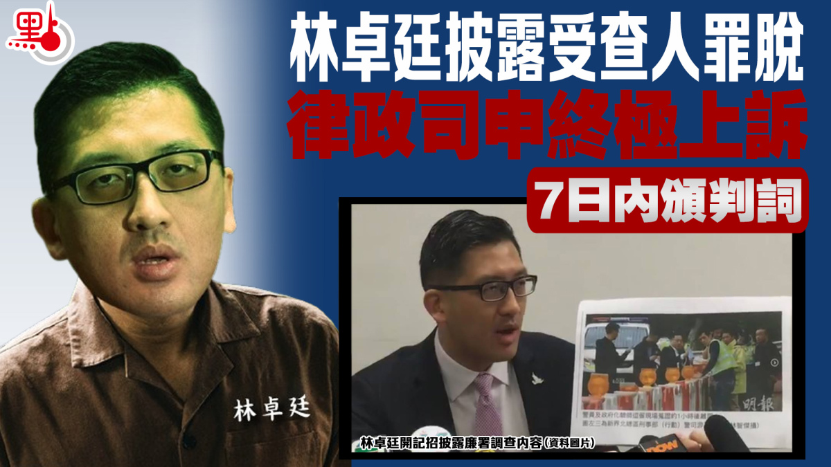 立法會時任議員林卓廷於2019年及2020年期間,3次公開披露廉政公署調查元朗「7·21」事件中時任元朗警區助理指揮官游乃強的消息,林其後被法庭裁定3項「披露受調查人身份」罪成,判囚4個月。但林於本月8日獲高等法院暫委法官游德康裁定上訴得直,撤銷定罪兼得訟費。律政司不服,今(7日)在高院原訟庭申請終院上訴許可之證明書。控辯早前已呈交書面陳詞,暫委法官游德康聽取陳詞後,押後7日內頒判詞。